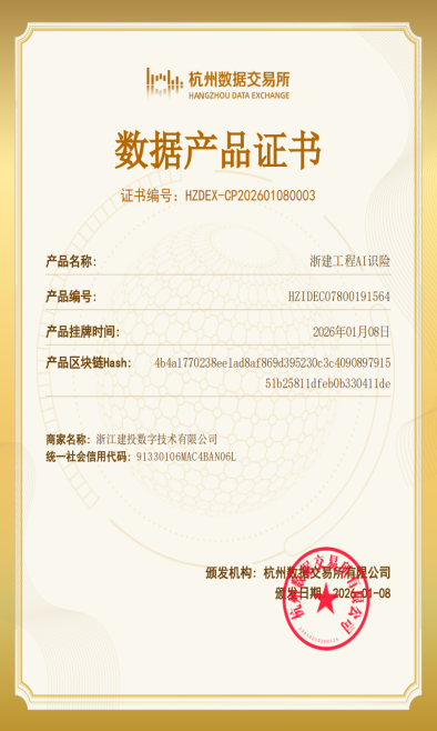 近日,集团所属浙建数字自主研发的“浙建工程AI识险”正式在杭州数据交易所挂牌。本次挂牌是浙建数字在探索“数字化先行者、创新转型先锋”道路上的重要实践。